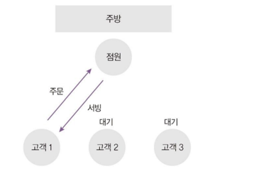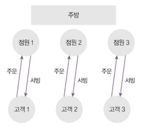 한 요청(고객)에 주문-> 요리 ->서빙 이 실행되지만,